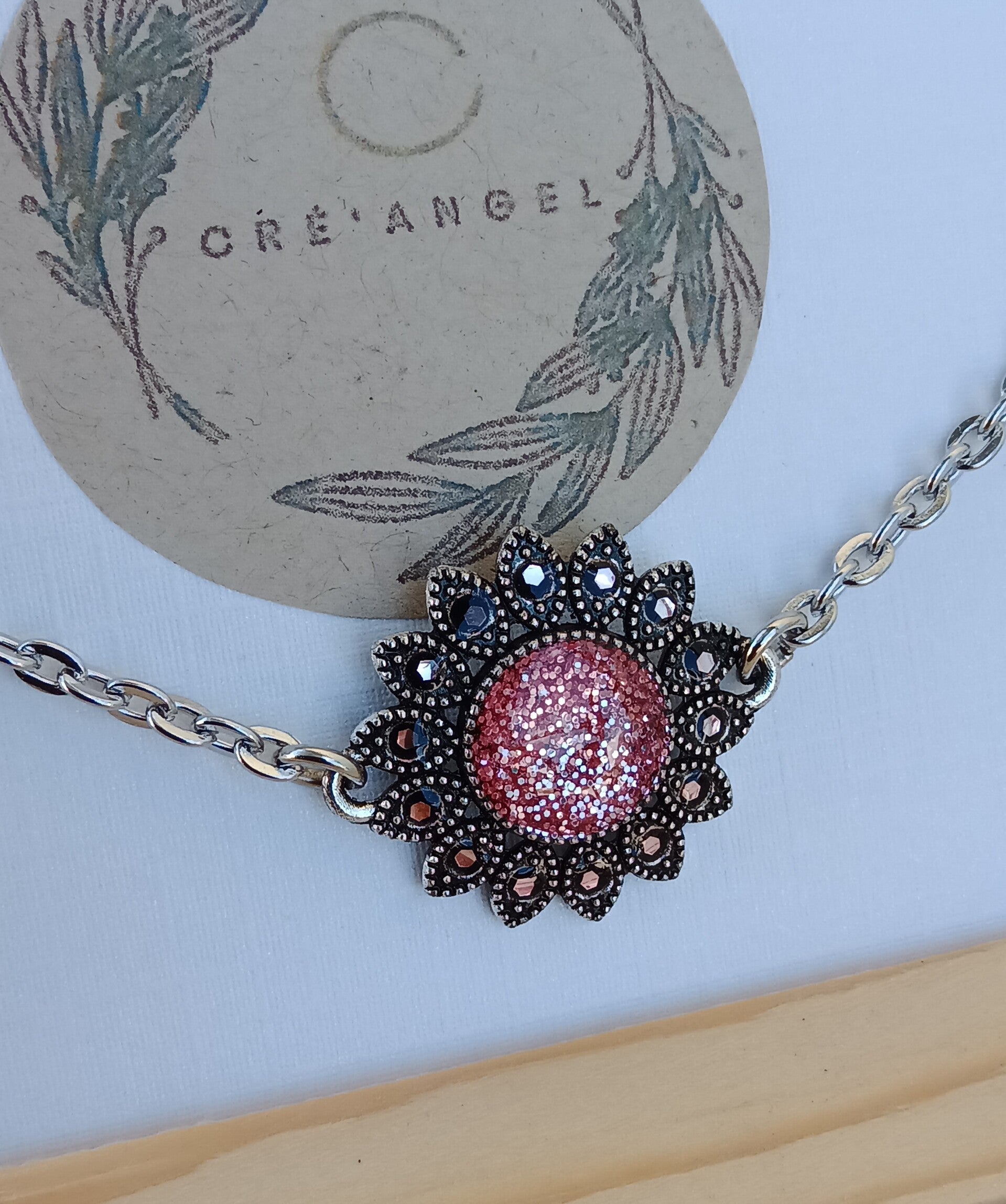 Bracelet réalisé en résine UV tout en paillettes couleur rose pâle.